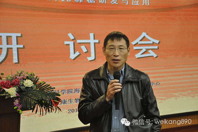 Chinese Academy of Sciences, an associate researcher at the Institute of marine Ronge Xing, Li Kecheng respectively on the chitosan oligosaccharide derivatives antioxidant, reduced the activity of blood glucose and treatment of acute renal failure "and the single polymerization degree chitosan oligosaccharide preparation technology, the theme of the report.